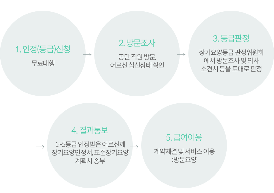 등급판정위원회의 심의 및 판정 후 신청인에게 장기요양인정서 등을 통보하며, 신청인은 장기요양인정서가 도달한날부터(주1) 장기요양급여를 받을 수 있습니다.